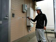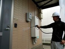 その上で、高圧洗浄で外壁の表面についた汚れをしっかり落としていきます。
